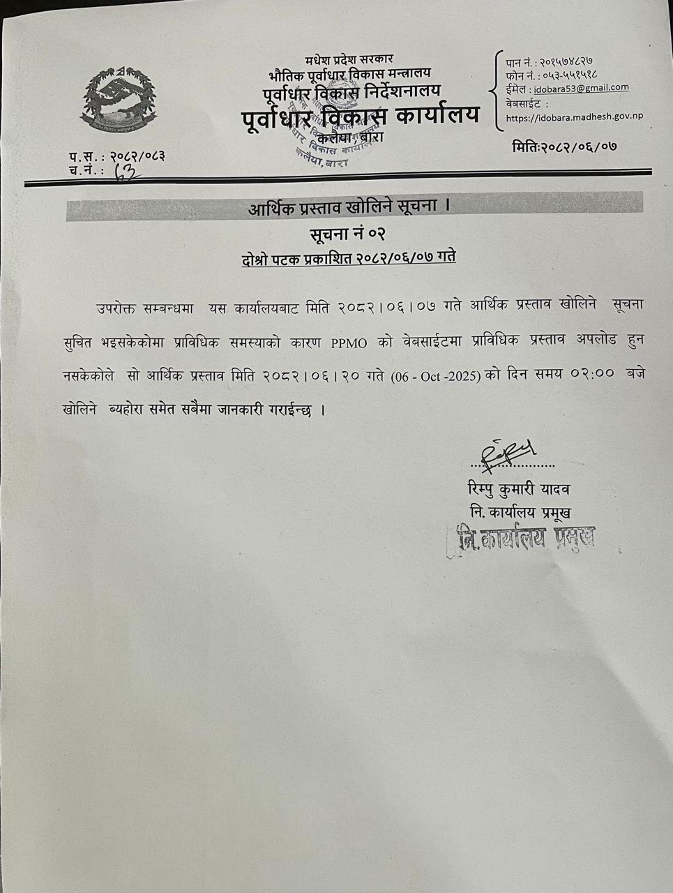 आर्थिक प्रस्ताव खोलिने दोश्रो पटक प्रकाशित सूचना ।