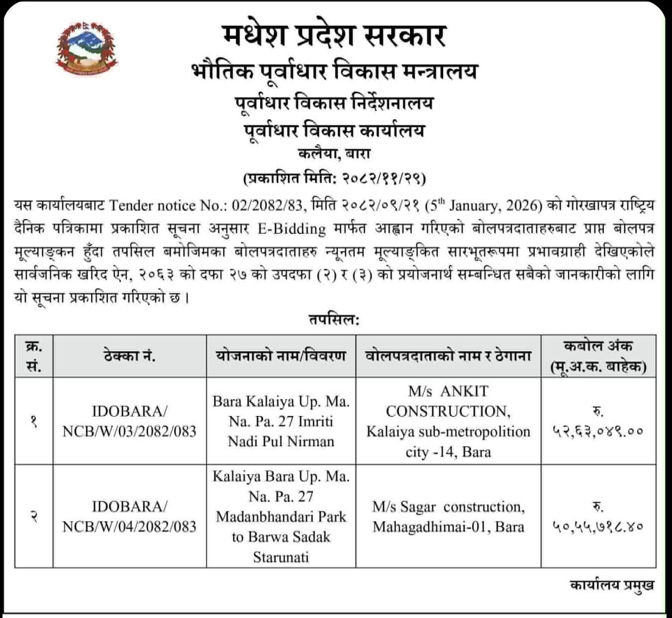 कार्यालय प्रमुखको विवरण